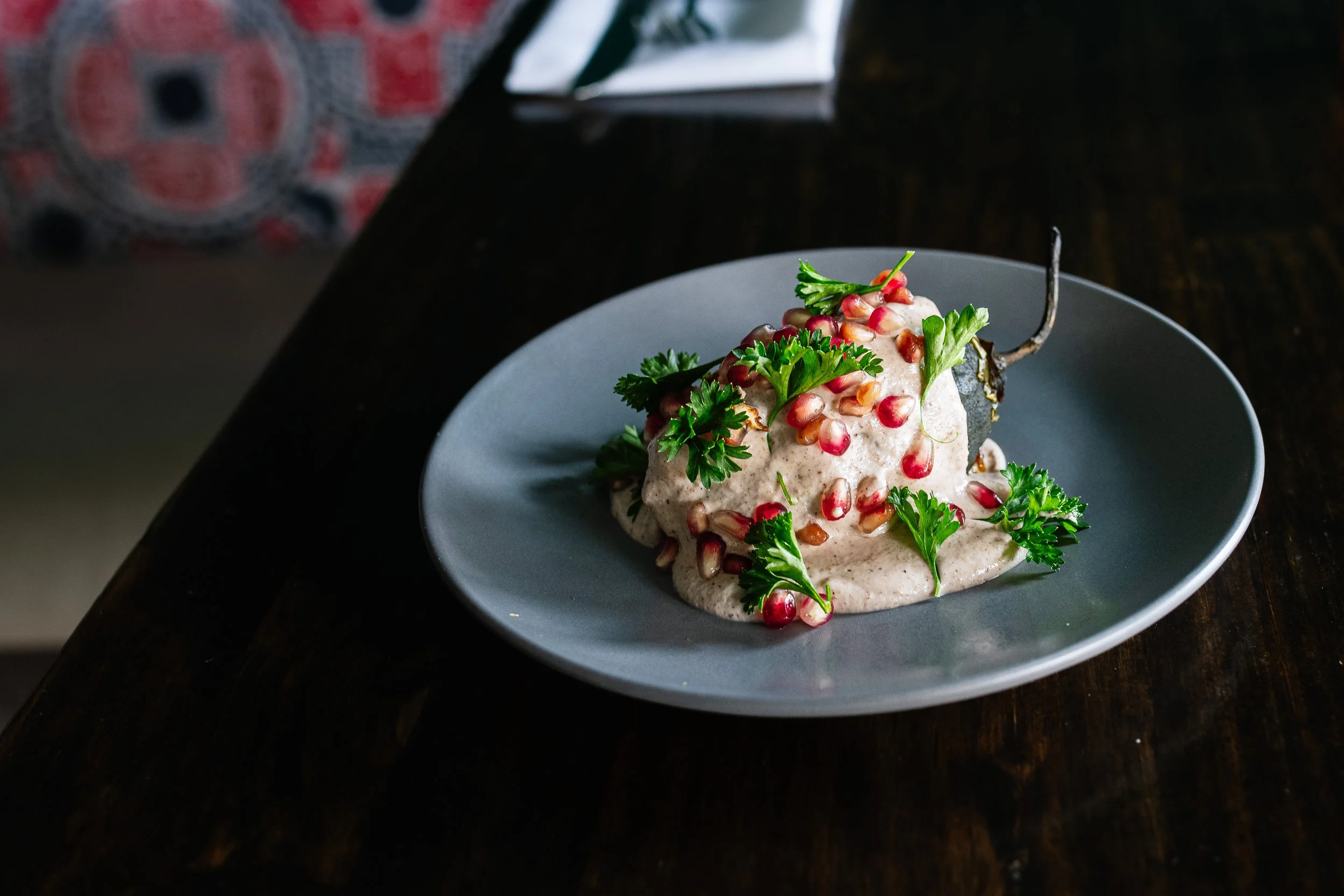 Like an Italy’s margherita pizza, the dish mirrors the colors of the Mexican flag: green poblano peppers, white sauce made from black walnuts—nogada, and red pomegranate seeds. The charred pepper was stuffed with beef and pork picadillo with an almost confusing—in the best way—amount of flavor.